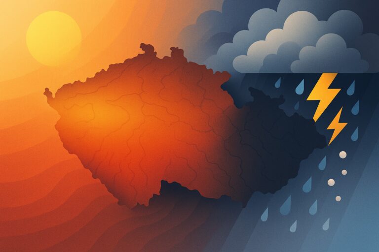V pátek 15. srpna 2025 padly teplotní rekordy na zhruba 60 % stanic, nejvíc v Dobřichovicích (36,9 °C). Dnes, v sobotu 16. srpna, varuje ČHMÚ před místními bouřkami v jižní polovině Česka a na Moravě; hrozí přívalové srážky kolem 40 mm a kroupy.